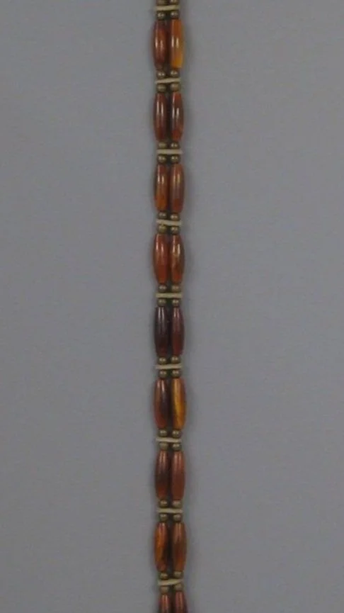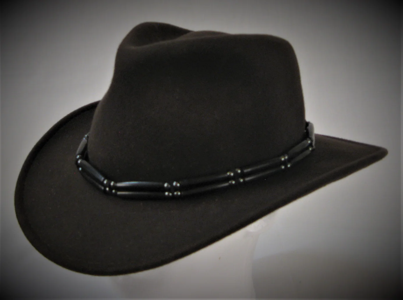 Backus Design Works offers handmade Western style hat bands. These bands consist of beads strung on imitation sinew and a faux suede tie in the back. Bands vary by type and origin of beads and ties.